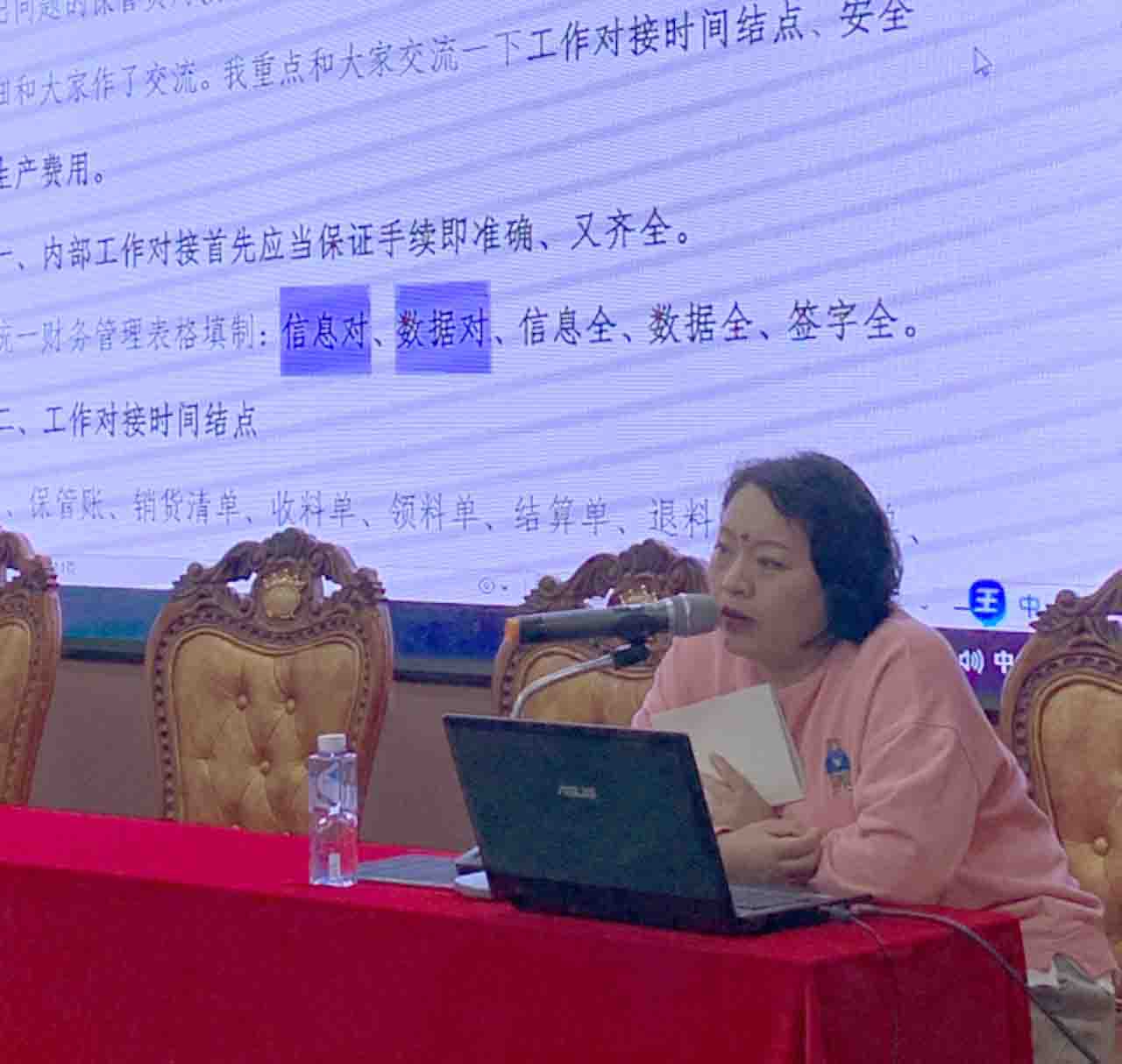 隨后,會議進入了業(yè)務探討交流環(huán)節(jié)。各部門業(yè)務代表紛紛上臺,分享自己在工作中的經驗和心得。預算科業(yè)務代表于璦華詳細介紹了預算制定的流程和注意事項,并結合實際案例進行了深入剖析。
